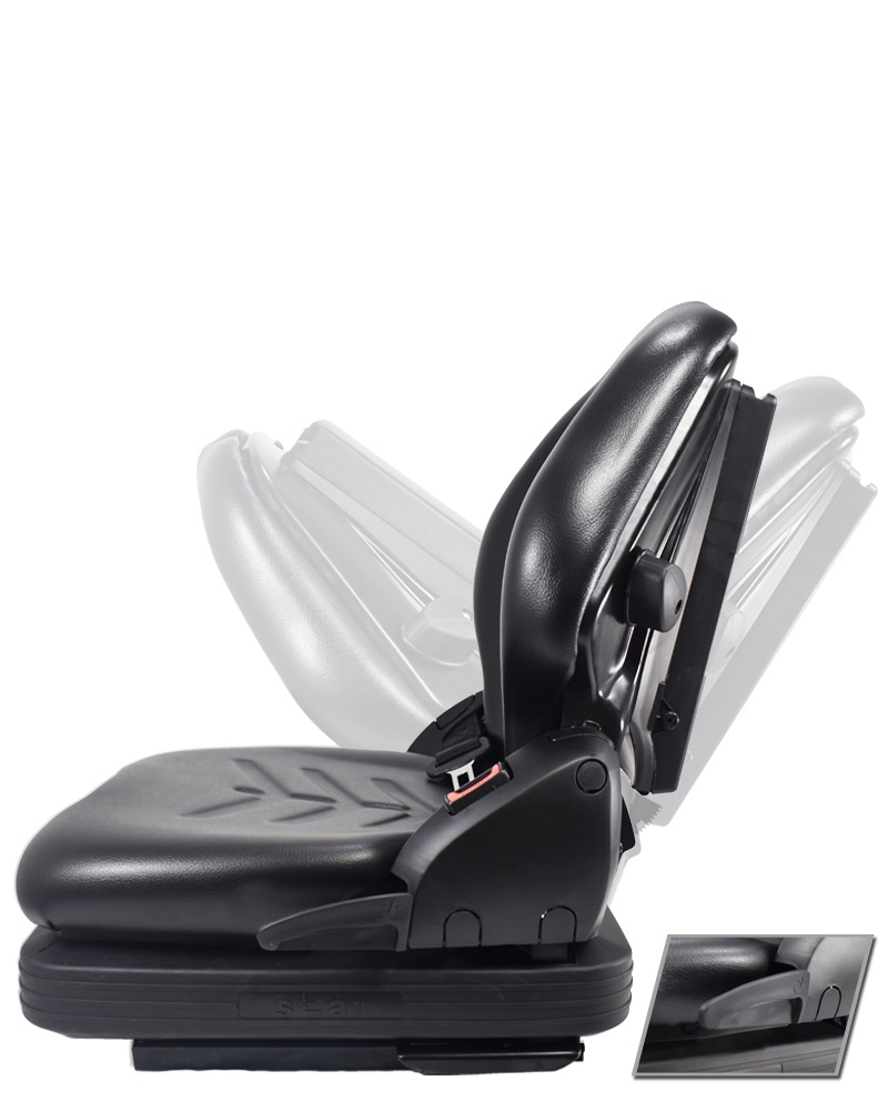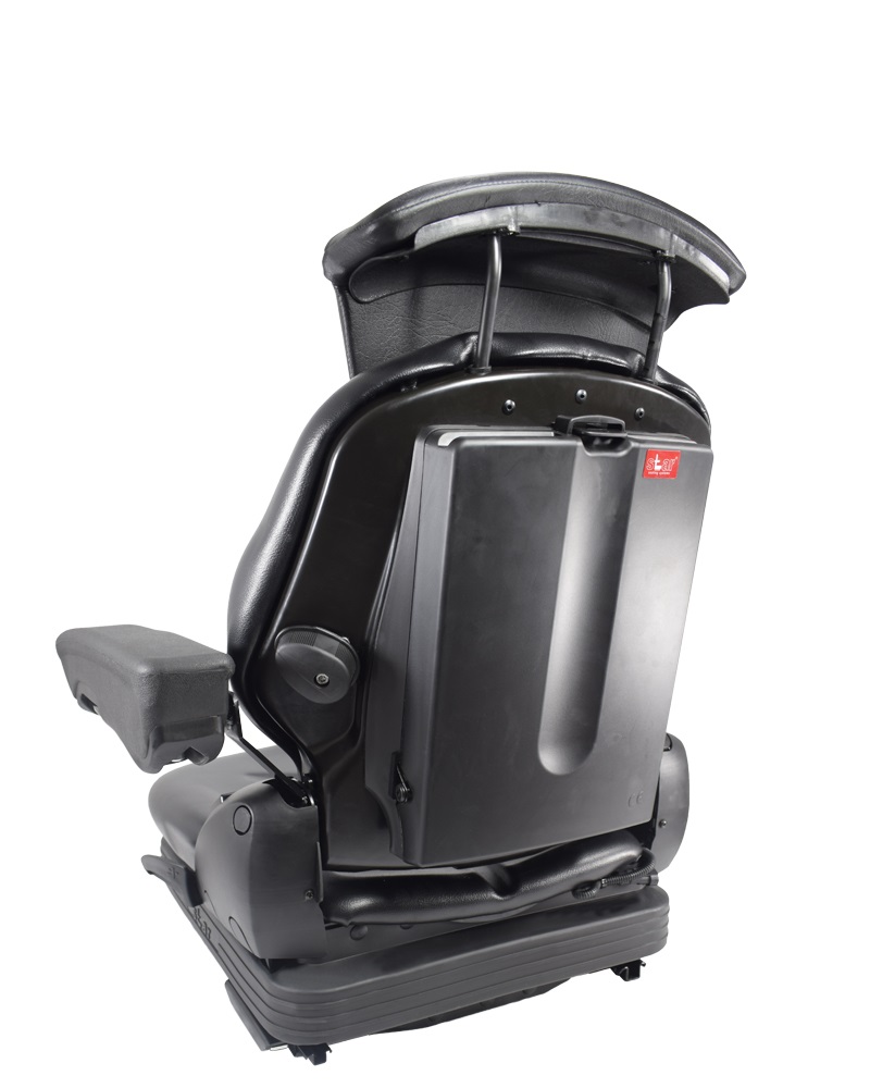 Manufactured using high-density vacuum technology polyurethane foam, this driver’s seat features an ergonomic, wear-resistant seat cushion and ergonomic backrest foam for maximum durability and comfort, as well as easy-to-clean black PVC upholstery.